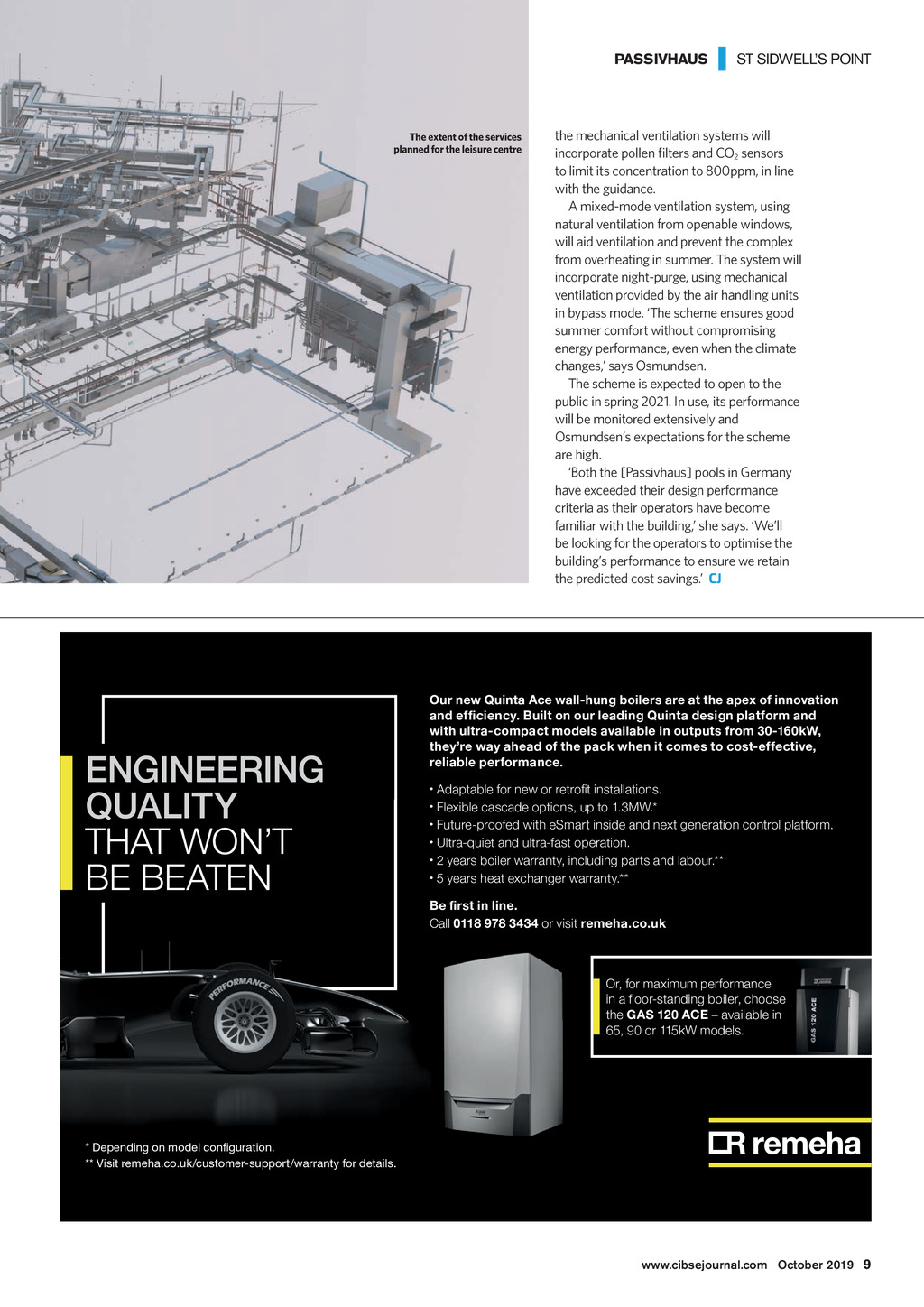 ASSIVHAUS | ST SIDWELLS POINT PASSIVHAUS ENERGY TARGETS pace heating demand for the pool hall of <40kWh.m-2 per year pace heating demand for all other areas of <20kWh.m-2 per year ym cooling demand h.m-2 per year ool water heating demand h.m-2 per year heating demand h.m-2 per year otal electricity demand ventilation, lighting, appliances, pool water treatment and circulation <120kWh.m-2 per year otal primary energy demand for assivhaus accreditation, including space heating, hot water, cooling, ventilation and electrical loads, including lighting, is h.m-2 per year. mechanical system. It was found that increasing the relative humidity set point by just 5% resulted in a 30% reduction in peak air ow required for dehumidication, says Platt. Once you factor in the reduced fan- and heating-energy associated with this ad ustment, as well as the reduced heat loss to the evaporation process, this element of the design proved to be a game-changer. To further reduce evaporation, two of the pools will be drained at night. Osmundsen is unconcerned that maintaining the pool hall at a high humidity level might increase the likelihood of condensation occurring within the building envelope. It is a Passivhaus scheme; the fabric of the building is high-performing and designed to be free of thermal bridges, so it will easily withstand these levels of humidity, she says. In addition, the likelihood of the fabric or any xtures and ttings corroding is reduced because a lower level of chlorine will be used to treat the pool water. By using fewer chemicals to treat the water, were expecting to extend the lifespan of the building fabric, Osmundsen says. Chlorine free It is believed that this will be the rst leisure centre in the UK to use a process called microltration, which achieves exceptional BUILDING BIOLOGY TESTING METHODS The Institut fr Baubiologie+Nachhaltigkeit (IBN) Standard of Building Biology Testing Methods (SBM-2015) has been used to define critical levels of electromechanical radiation and indoor pollutants, to create an indoor environment that is exposure-free and as natural as possible. he scheme is designed to comply with arts fields, waves and radiation and indoor to ins, pollutants and indoor climate . ltration efciency by forcing the water through a ceramic membrane, while using signicantly less energy and water than traditional sand ltration. According to smundsen, children typically consume a pint of water in a 45-minute swimming lesson. The groundbreaking microltration technology will lter out contaminants with great efciency and the chlorine dose will be reduced by using light as a primary means of water treatment, making the bathing experience much more pleasant and safe. It will offer swimmers exceptional water quality with minimal chemical content, she adds. In addition to its exceptional levels of water treatment, the buildings design for health means that its nishes have been selected to minimise off-gassing and the release of VOCs. Were developing the building to erman biology standards SBM-2015 see panel, Building biology testing methods , so the pallet of materials is very natural and neutral, explains smundsen. To comply with the standard, the scheme even includes a Faraday cage around the childrens creche to protect them from electromagnetic elds. Even 8 October 2019 www.cibsejournal.com CIBSE Oct19 pp06-09 Passivhaus pool Supp.indd 8 20/09/2019 13:47