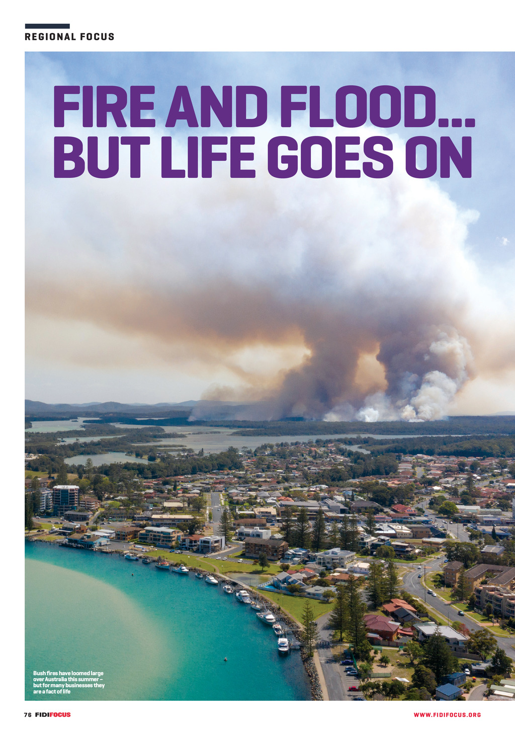R E G I O N A L FOCUS FIRE AND FLOOD... BUT LIFE GOES ON Bush fires have loomed large over Australia this summer but for many businesses they are a fact of life 76 FF296 AprMay20 pp76-87 Regional Focus.indd 76 WW W. F I D I FOC U S . OR G 31/03/2020 09:04