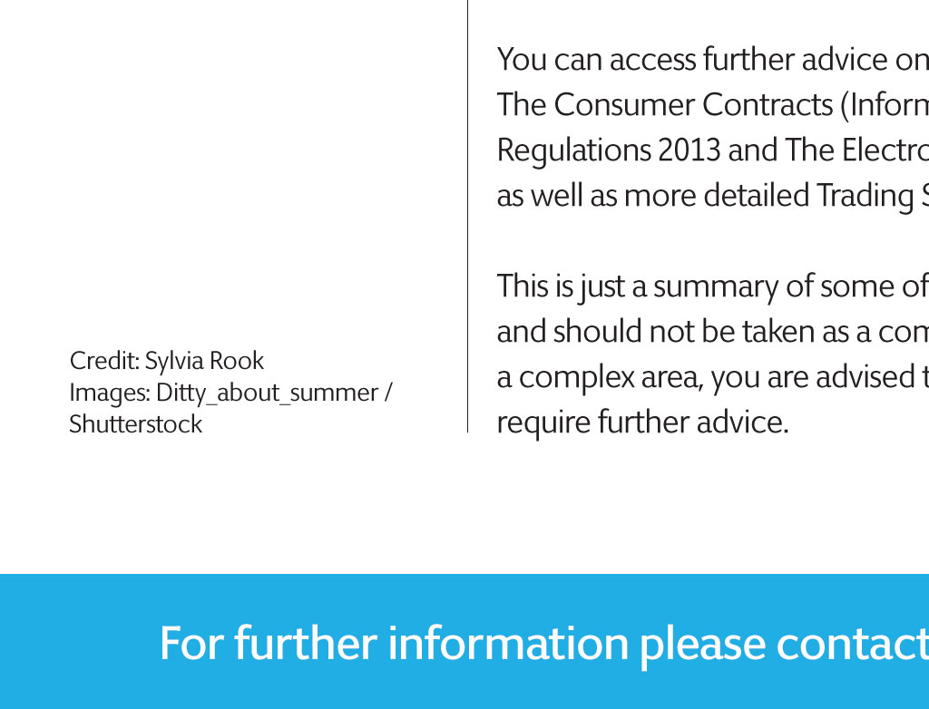london edition aUTUmn 2016 dISTANCE SELLING: REGuLATIoNS saLes From aFar W hat you need to know about new rules and your customers rights Most traders are now aware of their obligations under the Consumer Rights Act 2015 when selling goods, recognising that customers have specific rights if goods are faulty or misdescribed. However, few are fully aware of the specific rules covering the sale of goods, services and digital content by distance whether over the phone, by mail order or via the internet. These give consumers more rights than when buying the same item in a shop. Fewer traders are fully aware of the specific rules covering the sale of goods, services and digital content by distance the Consumer Contracts (information, Cancellation and Additional Charges) Regulations 2013, which came into force in June 2014, specify rules for traders selling to consumers at a distance, as well as rights for consumers buying in this way. The rules cover most but not all distance contracts, although there are specific exemptions and traders are advised to seek further advice if they have any doubt about the products they sell. The law requires that, before traders enter into a distance contract with a consumer, they provide the consumer with certain information, including: the traders name and address; the price and description of the goods; and, most significantly, the existence of the right to cancel the contract for any reason, and to receive a full refund of the money they have paid, with certain specific exemptions. Further legislation the electronic Commerce (eC Directive) Regulations 2002 also requires that an email address must be provided for consumers to contact the trader. The law gives the consumer 14 days from the day after the goods are received in which to cancel the contract; this allows time to examine the goods to ensure they are suitable, in the same way as they could in a shop. The consumer then has a further 14 days in which to return the goods to the trader. rEFUndS Once the trader has received the returned goods, he or she is required to refund the cost of the goods and the cost of standard delivery of the goods to the consumer within 14 days; if the consumer has paid for a priority delivery, the trader only has to pay the standard charge. the trader will also be liable for the customers return postage costs, unless he or she has expressly stated that the consumer has to bear this charge. No charge may be made for restocking, but the trader may deduct an amount from the refund if the consumer has used or damaged the goods, or has handled them more than they could have done in a shop to ensure they were suitable. If the delivery of goods consists of multiple components as part of the same order, the cancellation period ends 14 days after the date of delivery of the final item. If the trader does not give the correct information about cancellation rights, this period is extended to one year and 14 days. A cancellation form should be provided for consumers to use, although they do not have to use it. Goods should be delivered within 30 days unless otherwise agreed with the consumer and remain at the risk of the trader until in the possession either of the consumer or of someone they have nominated. So, if the goods go missing after being left on the consumers doorstep or with a neighbour, it is the traders responsibility to replace them. You can access further advice on the law relating to distance selling by reading The Consumer Contracts (Information, Cancellation and Additional Charges) Regulations 2013 and The Electronic Commerce (EC directive) Regulations 2002, as well as more detailed Trading Standards guidance on the Regulations. Credit: Sylvia Rook Images: ditty_about_summer / Shutterstock This is just a summary of some of the requirements relating to distance selling, and should not be taken as a comprehensive explanation of the law. As this is quite a complex area, you are advised to contact your local Trading Standards if you require further advice. For further information please contact your local Trading Standards Service