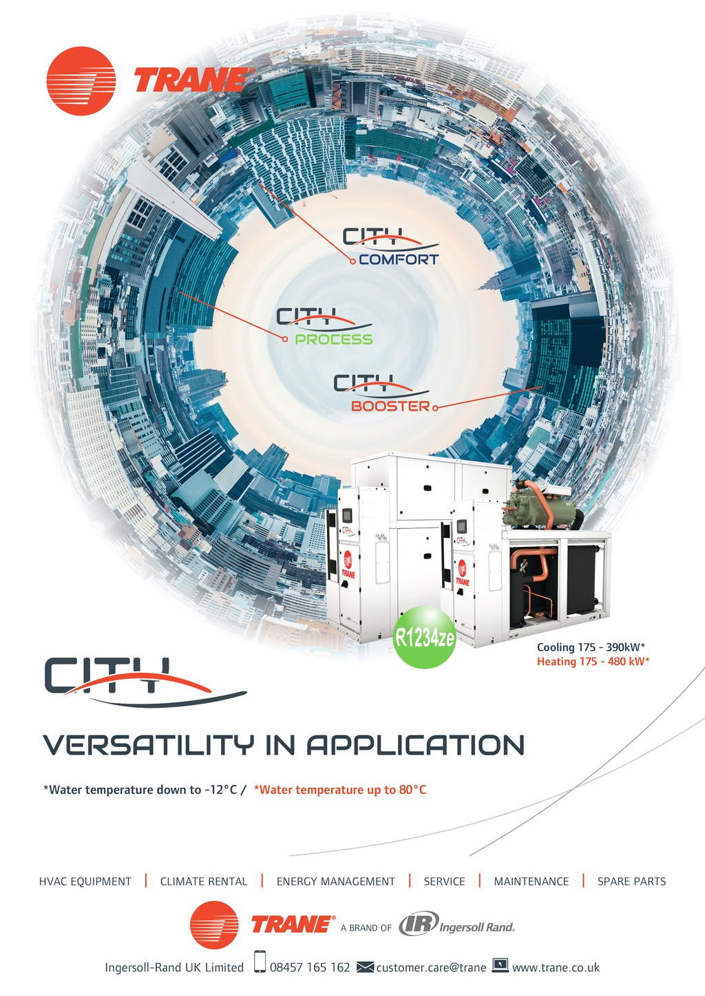 Cooling 175 - 390kW* Heating 175 - 480 kW* VERSATILITY IN APPLICATION *Water temperature down to -12C / *Water temperature up to 80C HVAC EQUIPMENT CLIMATE RENTAL ENERGY MANAGEMENT SERVICE MAINTENANCE SPARE PARTS A BRAND OF 42 January 2019 www.cibsejournal.com Ingersoll-Rand UK Limited p42_CIBSEMagJan19.indd 42 08457 165 162 customer.care@trane www.trane.co.uk 18/12/2018 09:03