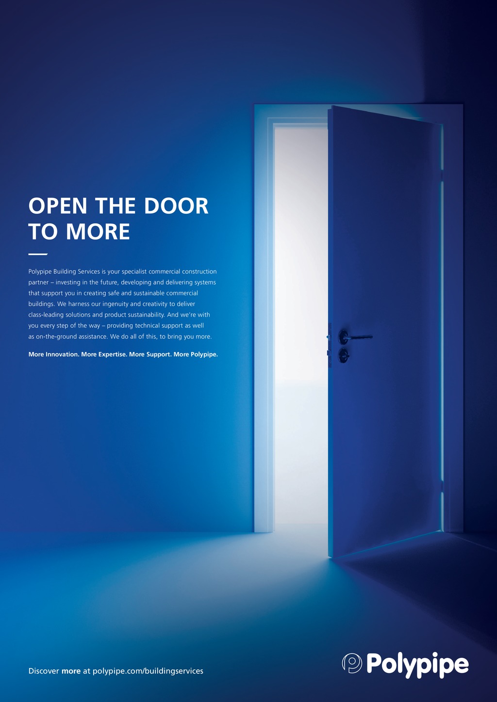 OPEN THE DOOR TO MORE Polypipe Building Services is your specialist commercial construction partner investing in the future, developing and delivering systems that support you in creating safe and sustainable commercial buildings. We harness our ingenuity and creativity to deliver class-leading solutions and product sustainability. And were with you every step of the way providing technical support as well as on-the-ground assistance. We do all of this, to bring you more. More Innovation. More Expertise. More Support. More Polypipe. Discover more at polypipe.com/buildingservices 58 March 2019 www.cibsejournal.com p58_CIBSEMagMar19.indd 58 20/02/2019 09:00