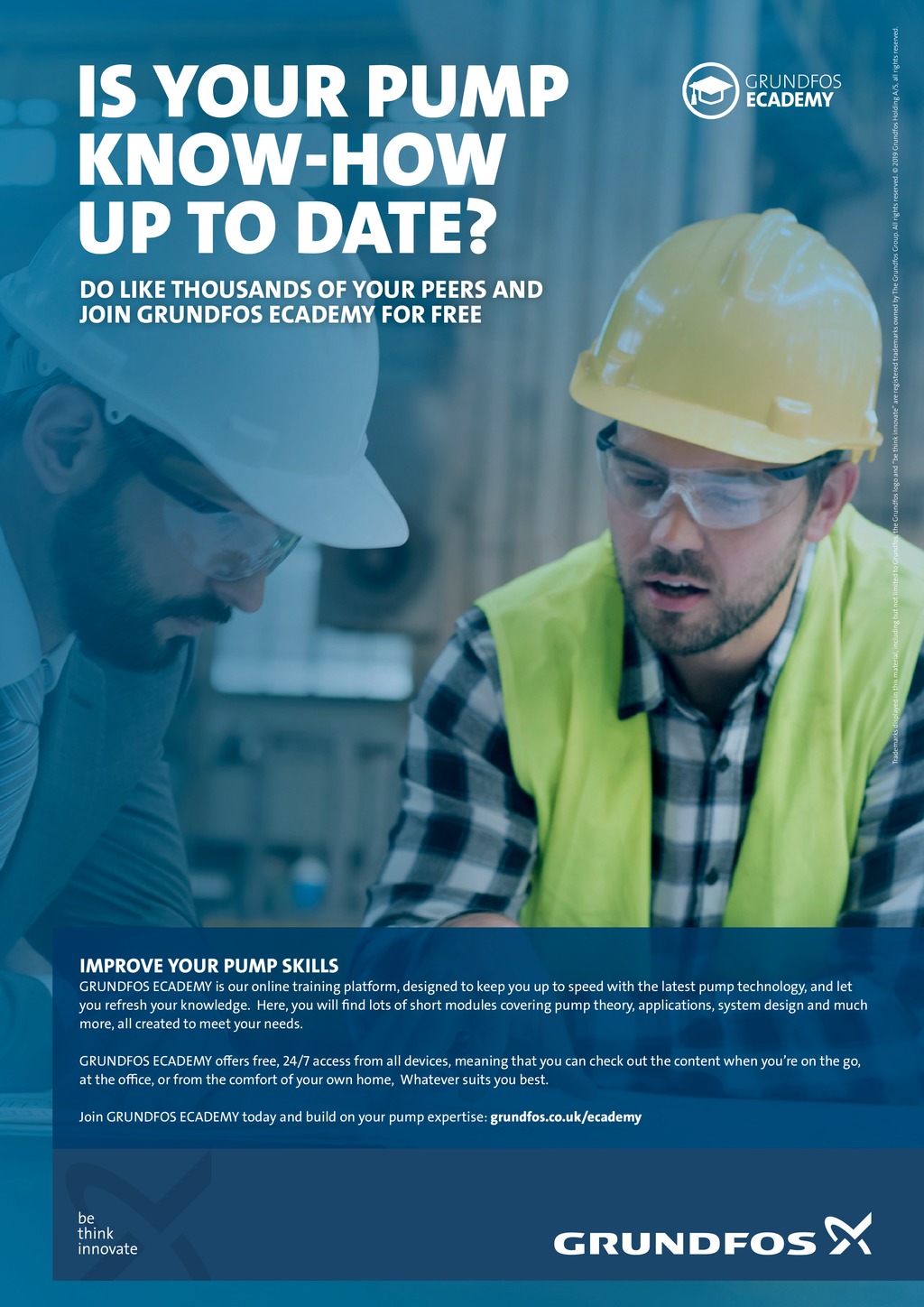 rademarks displayed in this material, including but not limited to Grundfos, the Grundfos logo and be think innovate are registered trademarks owned by The Grundfos Group. All rights reserved. 2019 Grundfos Holding A/S, all rights reserved. IS YOUR PUMP KNOW-HOW UP TO DATE? ECADEMY DO LIKE THOUSANDS OF YOUR PEERS AND JOIN GRUNDFOS ECADEMY FOR FREE IMPROVE YOUR PUMP SKILLS GRUNDFOS ECADEMY is our online training platform, designed to keep you up to speed with the latest pump technology, and let you refresh your knowledge. Here, you will find lots of short modules covering pump theory, applications, system design and much more, all created to meet your needs. GRUNDFOS ECADEMY offers free, 24/7 access from all devices, meaning that you can check out the content when youre on the go, at the office, or from the comfort of your own home, Whatever suits you best. Join GRUNDFOS ECADEMY today and build on your pump expertise: grundfos.co.uk/ecademy 6 August 2019 www.cibsejournal.com p06.CIBSEMagAUG19.indd 6 16/07/2019 15:00