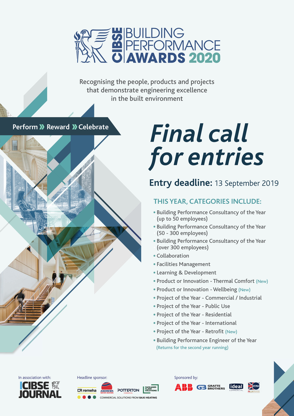 Recognising the people, products and projects that demonstrate engineering excellence in the built environment Perform Reward Celebrate Final call for entries Entry deadline: 13 September 2019 THIS YEAR, CATEGORIES INCLUDE: Building Performance Consultancy of the Year (up to 50 employees) Building Performance Consultancy of the Year (50 - 300 employees) Building Performance Consultancy of the Year (over 300 employees) Collaboration Facilities Management Learning & Development Product or Innovation - Thermal Comfort (New) Product or Innovation - Wellbeing (New) Project of the Year - Commercial / Industrial Project of the Year - Public Use Project of the Year - Residential Project of the Year - International Project of the Year - Retrofit (New) Building Performance Engineer of the Year (Returns for the second year running) In association with: Headline sponsor: Sponsored by: 38 September 2019 www.cibsejournal.com p38-39.CIBSEMagSEPT19.indd 38 20/08/2019 14:48