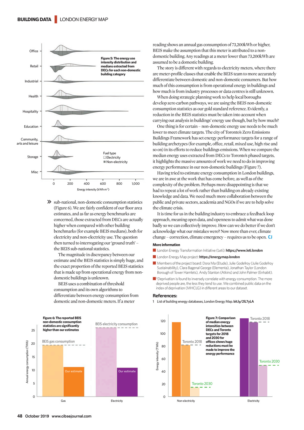 | LONDON ENERGY MAP ffice Figure 5: The energy use intensity distribution and medians extracted from DECs for each non-domestic building category Retail Industrial Health Hospitality Education Community, arts and leisure Fuel type n Electricity n Non-electricity Storage Misc 0 200 400 600 800 1,000 Energy intensity (kWh.m-2) sub-national, non-domestic consumption statistics (Figure 6). We are fairly confident of our floor area estimates, and as far as energy benchmarks are concerned, those extracted from DECs are actually higher when compared with other building benchmarks (for example BEIS medians), both for electricity and non-electricity use. The question then turned to interrogating our ground truth the BEIS sub-national statistics. The magnitude in discrepancy between our estimate and the BEIS statistics is simply huge, and the exact proportion of the reported BEIS statistics that is made up from operational energy from nondomestic buildings is unknown. BEIS uses a combination of threshold consumption and its own algorithms to differentiate between energy consumption from domestic and non-domestic meters. If a meter Annual energy consumption (TWh) 25 20 Figure 6: The reported BEIS non-domestic consumption statistics are signi cantly higher than our estimates London Energy Map project: https://energymap.london Members of the project board: Dora Ma (Etude), Julie Godefroy (Julie Godefroy Sustainability), Clara Bagenal George (Elementa), Jonathan Taylor (London Borough of Tower Hamlets), Andy Stanton (Atkins) and John Palmer (Enhabit). *Deprivation is found to inversely correlate with energy consumption. The more deprived people are, the less they tend to use. We combined public data on the index of deprivation (MHCLG) in different areas to our dataset. References: 1 List of building energy databases, London Energy Map. bit.ly/2lL7yLA 120 100 BE S gas consumption Our estimate More information London Energy Transformation Initiative (Leti): https://www.leti.london BE S electricity consumption 15 10 reading shows an annual gas consumption of 73,200kWh or higher, BEIS make the assumption that this meter is attributed to a nondomestic building. Any readings at a meter lower than 73,200kWh are assumed to be a domestic building. The story is different with regards to electricity meters, where there are meter-profile classes that enable the BEIS team to more accurately differentiate between domestic and non-domestic consumers. But how much of this consumption is from operational energy in buildings and how much is from industry processes or data centres is still unknown. When doing strategic planning work to help local boroughs develop zero carbon pathways, we are using the BEIS non-domestic consumption statistics as our gold standard reference. Evidently, a reduction in the BEIS statistics must be taken into account when carrying out analysis in buildings energy use though, but by how much? One thing is for certain non-domestic energy use needs to be much lower to meet climate targets. The city of Torontos Zero Emissions Buildings Framework has set energy performance targets for a range of building archetypes (for example, office, retail, mixed use, high rise and so on) in its efforts to reduce buildings emissions. When we compare the median energy uses extracted from DECs to Torontos phased targets, it highlights the massive amounts of work we need to do in improving energy performance in our non-domestic buildings (Figure 7). Having tried to estimate energy consumption in London buildings, we are in awe at the work that has come before, as well as of the complexity of the problem. Perhaps more disappointing is that we had to repeat a lot of work rather than building on already existing knowledge and data. We need much more collaboration between the public and private sectors, academia and NGOs if we are to help solve the climate crisis. It is time for us in the building industry to embrace a feedback loop approach, meaning open data, and openness to admit what was done badly so we can collectively improve. How can we do better if we dont acknowledge what our mistakes were? Now more than ever, climate change correction, climate emergency requires us to be open. CJ Our estimate 5 Energy intensity (TWh) BUILDING DATA Toronto 2018 80 60 Toronto 2018 Toronto 2030 40 20 0 Figure 7: Comparison of median energy intensities between DECs and Toronto targets for 2018 and 2030 for of ces shows huge reductions must be made to improve the energy performance Toronto 2030 0 Gas Electricity Non-electricity Electricity 48 October 2019 www.cibsejournal.com CIBSE Oct19 pp46-48 London energy map.indd 48 20/09/2019 18:16