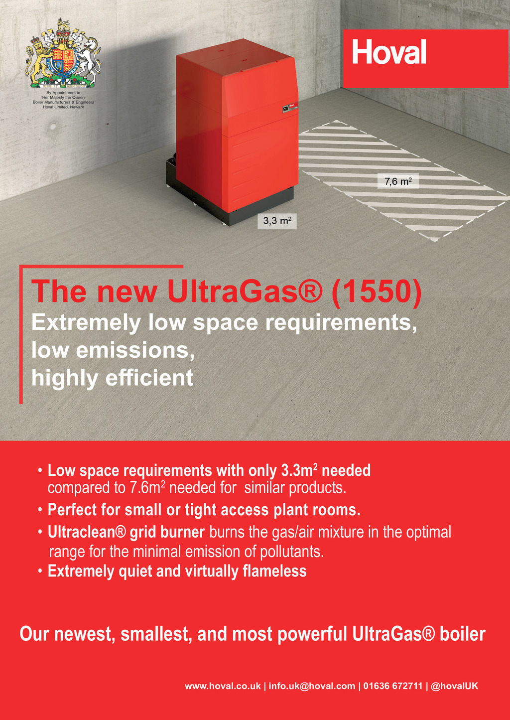 The new UltraGas (1550) Extremely low space requirements, low emissions, KLJKO\HFLHQW Low space requirements with only 3.3m2 needed compared to 7.6m2 needed for similar products. Perfect for small or tight access plant rooms. Ultraclean grid burner burns the gas/air mixture in the optimal range for the minimal emission of pollutants. ([WUHPHO\TXLHWDQGYLUWXDOO\DPHOHVV Our newest, smallest, and most powerful UltraGas boiler www.hoval.co.uk | info.uk@hoval.com | 01636 672711 | @hovalUK 48 November 2019 www.cibsejournal.com p48.CIBSEMagNOV19.indd 48 22/10/2019 15:07