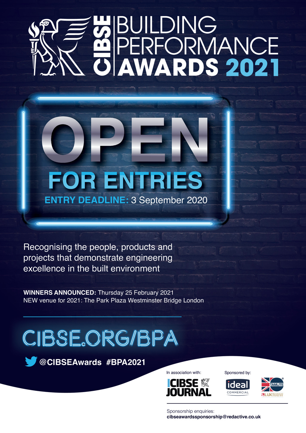 OR ENTRIES ENTRY DEADLINE: 3 September 2020 Recognising the people, products and projects that demonstrate engineering excellence in the built environment WINNERS ANNOUNCED: Thursday 25 February 2021 NEW venue for 2021: The Park Plaza Westminster Bridge London L @CIBSEAwards #BPA2021 2 June 2020 www.cibsejournal.com p02.CIBSEMagJune20.indd 2 In association with: Sponsored by: Sponsorship enquiries: cibseawardssponsorship@redactive.co.uk 19/05/2020 10:33