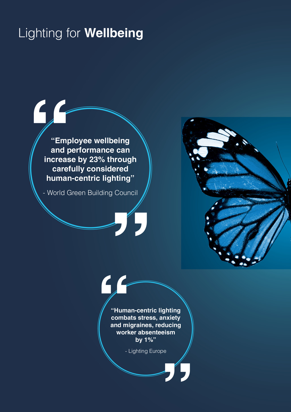Lighting for Wellbeing Employee wellbeing and performance can increase by 23% through carefully considered human-centric lighting - World Green Building Council Human-centric lighting combats stress, anxiety and migraines, reducing worker absenteeism by 1% - Lighting Europe 26 June 2020 www.cibsejournal.com CIBSE-Supp-June-2020-DPS-Tamlite-V1.indd All Pages p26-27.CIBSEMagJune20.indd 26 19/05/2020 10:11