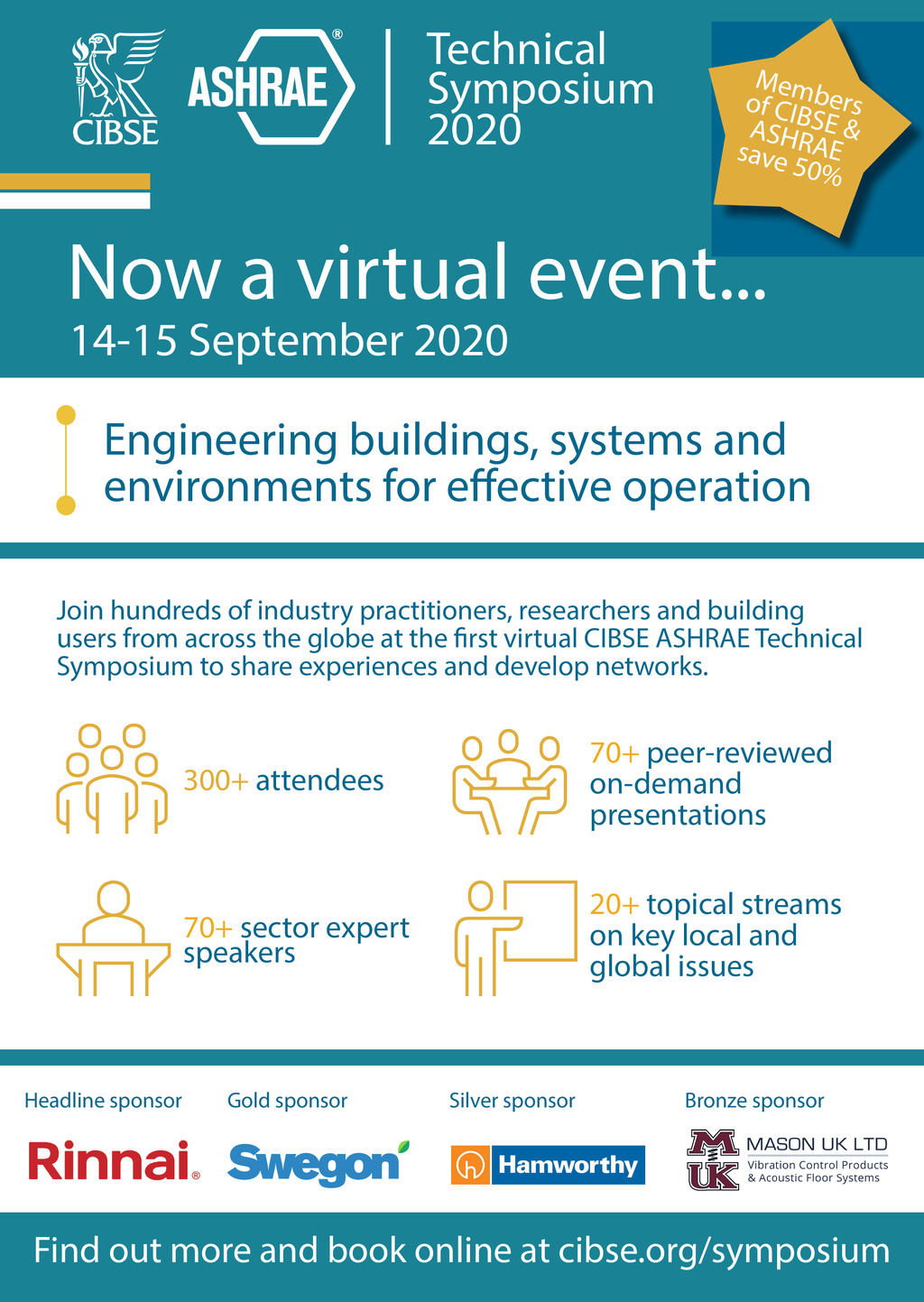 Technical Symposium 2020 Mem of CIB bers ASHRSE & save AE 50% Now a virtual event... 14-15 September 2020 Engineering buildings, systems and environments for effective operation Join hundreds of industry practitioners, researchers and building users from across the globe at the first virtual CIBSE ASHRAE Technical Symposium to share experiences and develop networks. Headline sponsor 300+ attendees 70+ peer-reviewed on-demand presentations 70+ sector expert speakers 20+ topical streams on key local and global issues Gold sponsor Silver sponsor Bronze sponsor Find out more and book online at cibse.org/symposium 10 August 2020 www.cibsejournal.com p10.CIBSEMagAug20.indd 10 20/07/2020 15:58