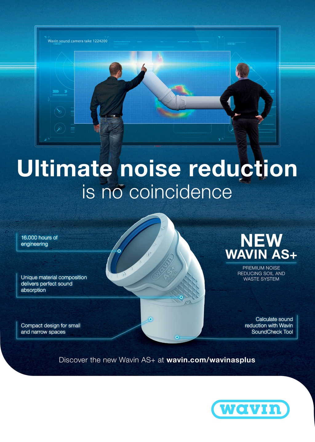 ltimate noise reduction is no coincidence NEW 16.000 hours of engineering WAVIN AS+ Unique material composition delivers perfect sound absorption Compact design for small and narrow spaces PREMIUM NOISE REDUCING SOIL AND WASTE SYSTEM Calculate sound reduction with Wavin SoundCheck Tool Discover the new Wavin AS+ at wavin.com/wavinasplus 2 February 2021 www.cibsejournal.com p02.CIBSEMagFeb21.indd 2 18/01/2021 15:10