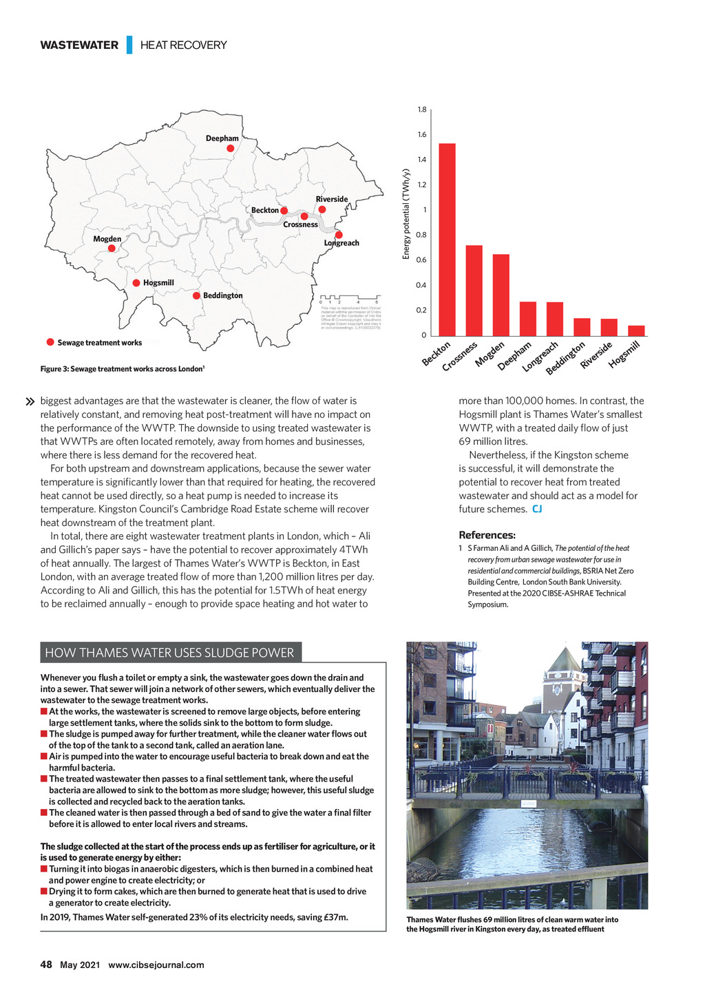 WASTEWATER | HEAT RECOVERY 1.8 1.6 Energy potential (TWh/y) 1.4 1.2 1 0.8 0.6 0.4 0.2 0 1 CJ References: 1 S Farman Ali and A Gillich, The potential of the heat recovery from urban sewage wastewater for use in residential and commercial buildings, BSRIA Net Zero Building Centre, London South Bank University. Presented at the 2020 CIBSE-ASHRAE Technical Symposium. 48 May 2021 www.cibsejournal.com CIBSE May 21 pp46-48 Sewage power Supp.indd 48 23/04/2021 16:07