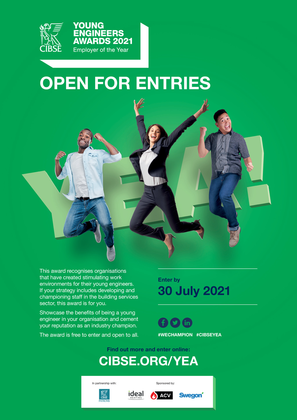 OPEN FOR ENTRIES This award recognises organisations that have created stimulating work environments for their young engineers. If your strategy includes developing and championing staff in the building services sector, this award is for you. Enter by 30 July 2021 Showcase the benets of being a young engineer in your organisation and cement your reputation as an industry champion. The award is free to enter and open to all. #WECHAMPION #CIBSEYEA Find out more and enter online: CIBSE.ORG/YEA In partnership with: Sponsored by: 4 June 2021 www.cibsejournal.com CIBR15756 YEA 2021_A4-Ad-Employer AW_with Sponsors.indd 1 p04.CIBSEMagJune21.indd 4 13/05/2021 13:32 10:34 17/05/2021