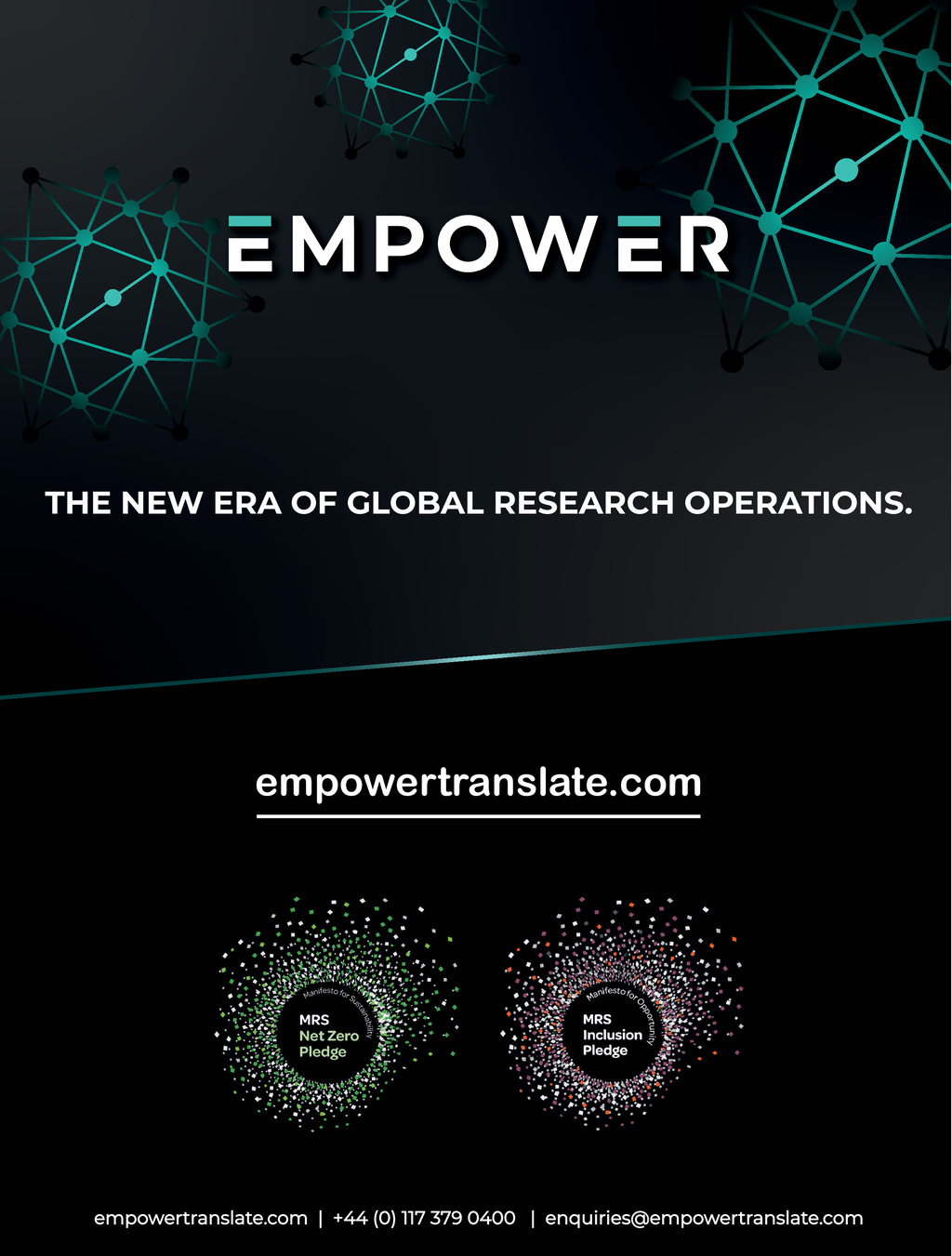 EMPOWER Impact Mag July 2021_CMYK for physical print.pdf 1 15/06/2021 12:31:10 THE NEW ERA OF GLOBAL RESEARCH OPERATIONS. C M Y CM MY CY CMY K empowertranslate.com empowertranslate.com | +44 (0) 117 379 0400 | enquiries@empowertranslate.com Impact ISSUE 34 2021_pp8-9_WV intro.indd 8 18/06/2021 12:32