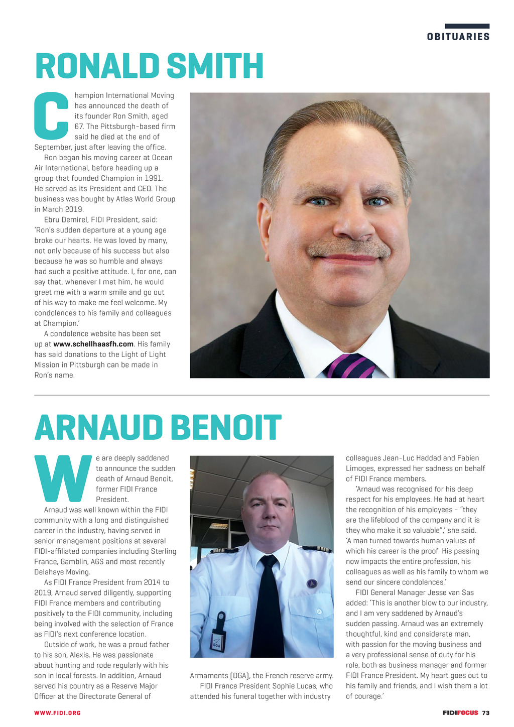 P E O P L E M OV ES JIMMY MURRAY NEW HILLDRUP CFO Jimmy Murray has been promoted to Executive Vice President and Chief Financial Officer at Hilldrup. Murray has held a number of leadership roles during his career at the company, including Vice-President and General Manager of Hilldrups Orlando operations before he was promoted to Senior Vice-President of Global Sales and Branch Operations. Most recently he was Executive Vice-President, Finance and Business Operations. According to the company, Murrays new expanded role will see him continue to manage Hilldrups accounting and finance departments and the companys financial decisions. He will also continue to oversee the leadership and direction of Hilldrups branch network. Charles McDaniel, Hilldrups President and CEO, said: I am proud to name Jimmy Murray as Hilldrups Chief Financial Officer. Over the years, his effective leadership has been built on his financial acumen, strategic sensibilities and sound fiscal judgement, all of which has helped Hilldrup maintain a strong financial posture, positioning us for continued growth and maximising our profitability. ATLAS WORLD GROUP PROMOTE PLANAVSKY Atlas World Group has announced the appointment of Rudy Planavsky to the role of President and Chief Operating Officer of Champion International, following the death of Ron Smith. The company said: Rudy is a highly experienced, successful, and wellregarded leader in the international relocation industry. He has been with Champion from inception and has played many key roles in building the organisation into the top-notch company it is today. We are grateful for Rudy to continue the legacy of our late leader, Ron Smith. Planavsky is one of the founding team members of Champion, which is 30 years old this year. MILLS REPLACES ROGERS AT UNIGROUP Marc Rogers has resigned as President of UniGroup Worldwide Moving, the US-based parent to mobility names including United Van Lines and Mayflower Transit. He had been in the role since December 2017 and, according to a statement by the Fenton, US-based company, left with immediate effect at the end of September 2021 to pursue other opportunities. Jason Mills, the companys Chief Operating Officer, has taken on the role of interim President and CEO. According to the company, Mills will work with Chairman Charles McDaniel and the companys executive leadership team to progress the companys strategic plan. ATLAS APPOINTS OPERATIONS DIRECTOR Amsterdam-based Atlas International Movers has appointed Andre Meuwsen as its Director of Operations. Meuwsen, who has 25 years experience in transport and logistics, will be responsible for the Atlas move coordination centre, planning department, moving crews and warehousing. BURKE TAKES ON GERSON OPERATIONS ROLE Gerson Relocation has appointed Martina Burke as its Head of Operations. Announcing the move, Gerson said: Martina has a proven track record within the international removals and relocation industry making her the ideal candidate to help drive the continued expansion of Gerson Relocation. Her wealth of experience with working with agents and managing operations, plus exceptional attention to detail, will help to ensure that our customers receive the best quality customer service. 72 FF304 Dec_Jan 22 pp72 People moves.indd 72 Martina Burke I am very excited to join AGM Group and Gerson Relocation, said Burke. This new role will allow me to work with our teams internally and our external customers to deliver a first-class moving Sander Bongertman and relocation service. Meanwhile, Gerson Netherlands has recruited Sander Bongertman as Commercial Director of the company. Previously at Schmidt Global Relocations and with six years experience in the industry, Bongertman will be charged with developing Gersons business in the relocation sector in mainland Europe. Rene van Valen, General Manager for Gerson Relocation Netherlands, said: I am thrilled to have Sander joining us as we develop our offerings across Europe. Having worked with Sander previously, I know he will bring his hard-working and professional approach to the team to drive the business forward. WW W. F I D I FOC U S . OR G 07/12/2021 10:14