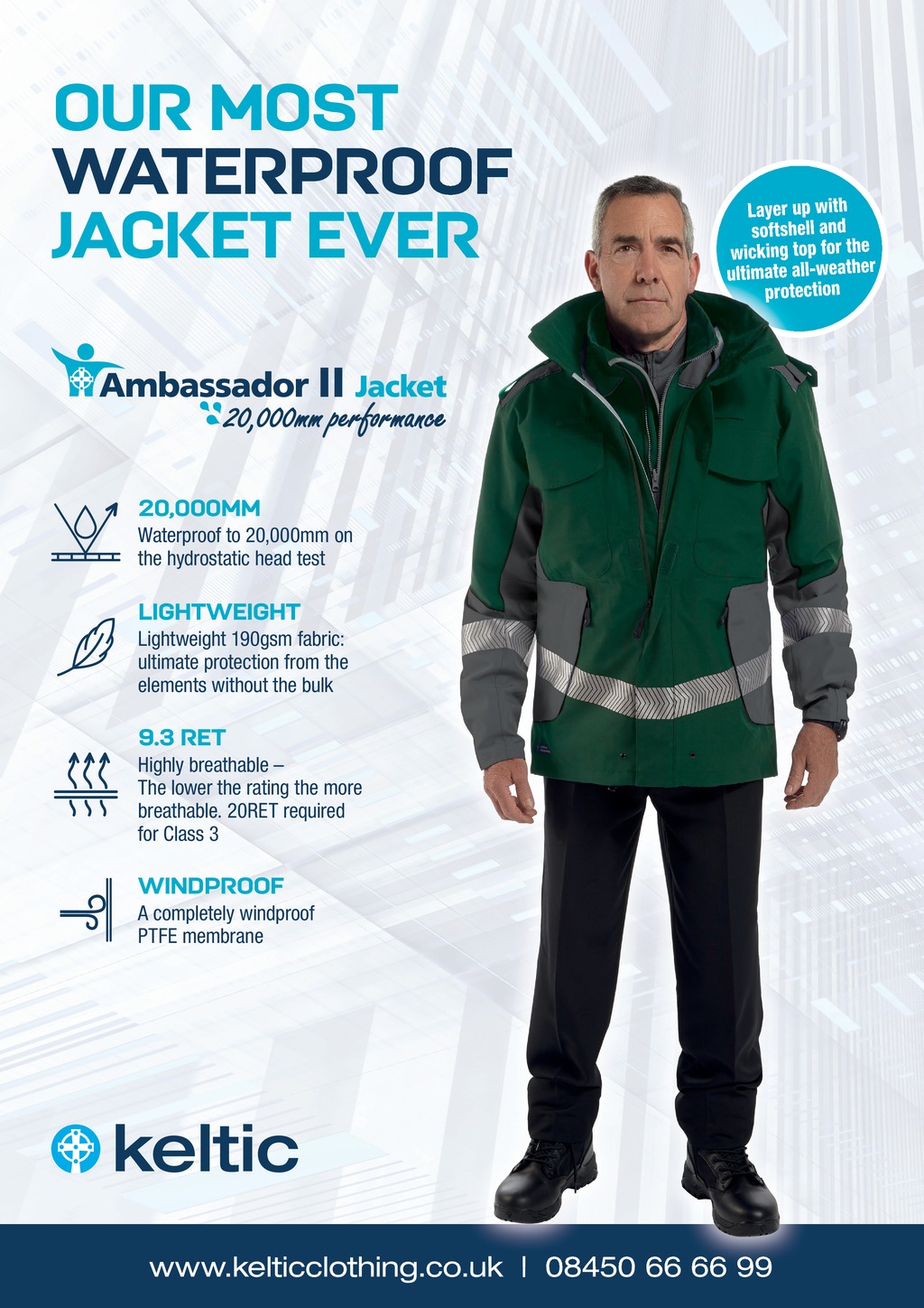 OUR MOST WATERPROOF JACKET EVER Layer up with softshell and wicking top for the ultimate all-weather protection 20,000MM Waterproof to 20,000mm on the hydrostatic head test LIGHTWEIGHT Lightweight 190gsm fabric: ultimate protection from the elements without the bulk 9.3 RET Highly breathable The lower the rating the more breathable. 20RET required for Class 3 WINDPROOF A completely windproof PTFEmembrane www.kelticclothing.co.uk | 08450 66 66 99 PNDec18 pp18-19 Interest Group.indd 18 26/11/2018 16:18