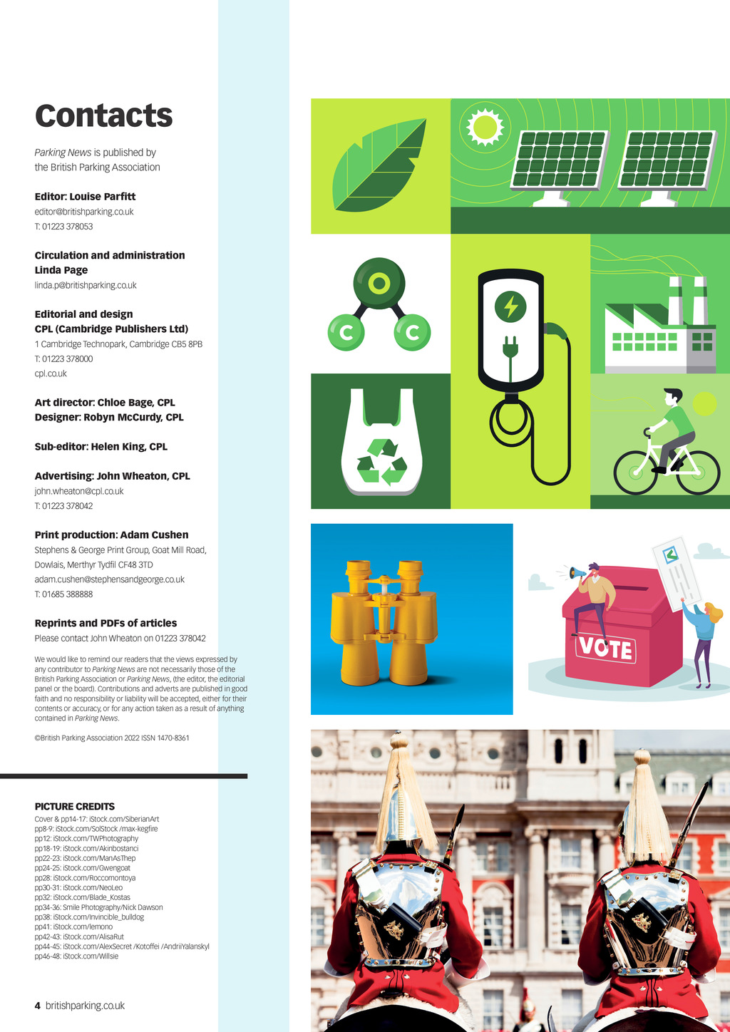 Contacts Parking News is published by the British Parking Association Editor: Louise Parfitt editor@britishparking.co.uk T: 01223 378053 Circulation and administration Linda Page linda.p@britishparking.co.uk Editorial and design CPL (Cambridge Publishers Ltd) 1 Cambridge Technopark, Cambridge CB5 8PB T: 01223 378000 cpl.co.uk Art director: Chloe Bage, CPL Designer: Robyn McCurdy, CPL Sub-editor: Helen King, CPL Advertising: John Wheaton, CPL john.wheaton@cpl.co.uk T: 01223 378042 Print production: Adam Cushen Stephens & George Print Group, Goat Mill Road, Dowlais, Merthyr Tydfil CF48 3TD adam.cushen@stephensandgeorge.co.uk T: 01685 388888 Reprints and PDFs of articles Please contact John Wheaton on 01223 378042 We would like to remind our readers that the views expressed by any contributor to Parking News are not necessarily those of the British Parking Association or Parking News, (the editor, the editorial panel or the board). Contributions and adverts are published in good faith and no responsibility or liability will be accepted, either for their contents or accuracy, or for any action taken as a result of anything contained in Parking News. British Parking Association 2022 ISSN 1470-8361 PICTURE CREDITS Cover & pp14-17: iStock.com/SiberianArt pp8-9: iStock.com/SolStock /max-kegfire pp12: iStock.com/TWPhotography pp18-19: iStock.com/Akinbostanci pp22-23: iStock.com/ManAsThep pp24-25: iStock.com/Gwengoat pp28: iStock.com/Roccomontoya pp30-31: iStock.com/NeoLeo pp32: iStock.com/Blade_Kostas pp34-36: Smile Photography/Nick Dawson pp38: iStock.com/Invincible_bulldog pp41: iStock.com/lemono pp42-43: iStock.com/AlisaRut pp44-45: iStock.com/AlexSecret /Kotoffei /AndriiYalanskyl pp46-48: iStock.com/Willsie 4 britishparking.co.uk PN May 2022 pp04-05 Contents.indd 4 21/04/2022 12:09