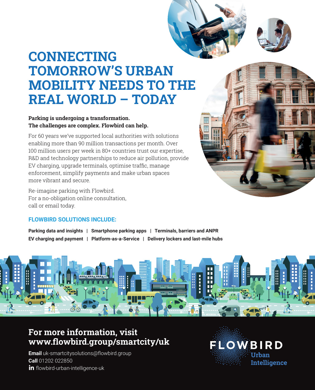 CONNECTING TOMORROWS URBAN MOBILITY NEEDS TO THE REAL WORLD TODAY Parking is undergoing a transformation. The challenges are complex. Flowbird can help. For 60 years weve supported local authorities with solutions enabling more than 90 million transactions per month. Over 100 million users per week in 80+ countries trust our expertise, R&D and technology partnerships to reduce air pollution, provide EV charging, upgrade terminals, optimise trafc, manage enforcement, simplify payments and make urban spaces more vibrant and secure. Re-imagine parking with Flowbird. For a no-obligation online consultation, call or email today. FLOWBIRD SOLUTIONS INCLUDE: Parking data and insights | Smartphone parking apps | Terminals, barriers and ANPR EV charging and payment | Platform-as-a-Service | Delivery lockers and last-mile hubs For more information, visit www.owbird.group/smartcity/uk Email uk-smartcitysolutions@owbird.group Call 01202 022850 owbird-urban-intelligence-uk 1406_Flowbird-July Parking News-v1.indd 1 PN Sept 2022 pp42-43 Political Perspective.indd 42 24/06/2022 09:52 15:23 22/08/2022