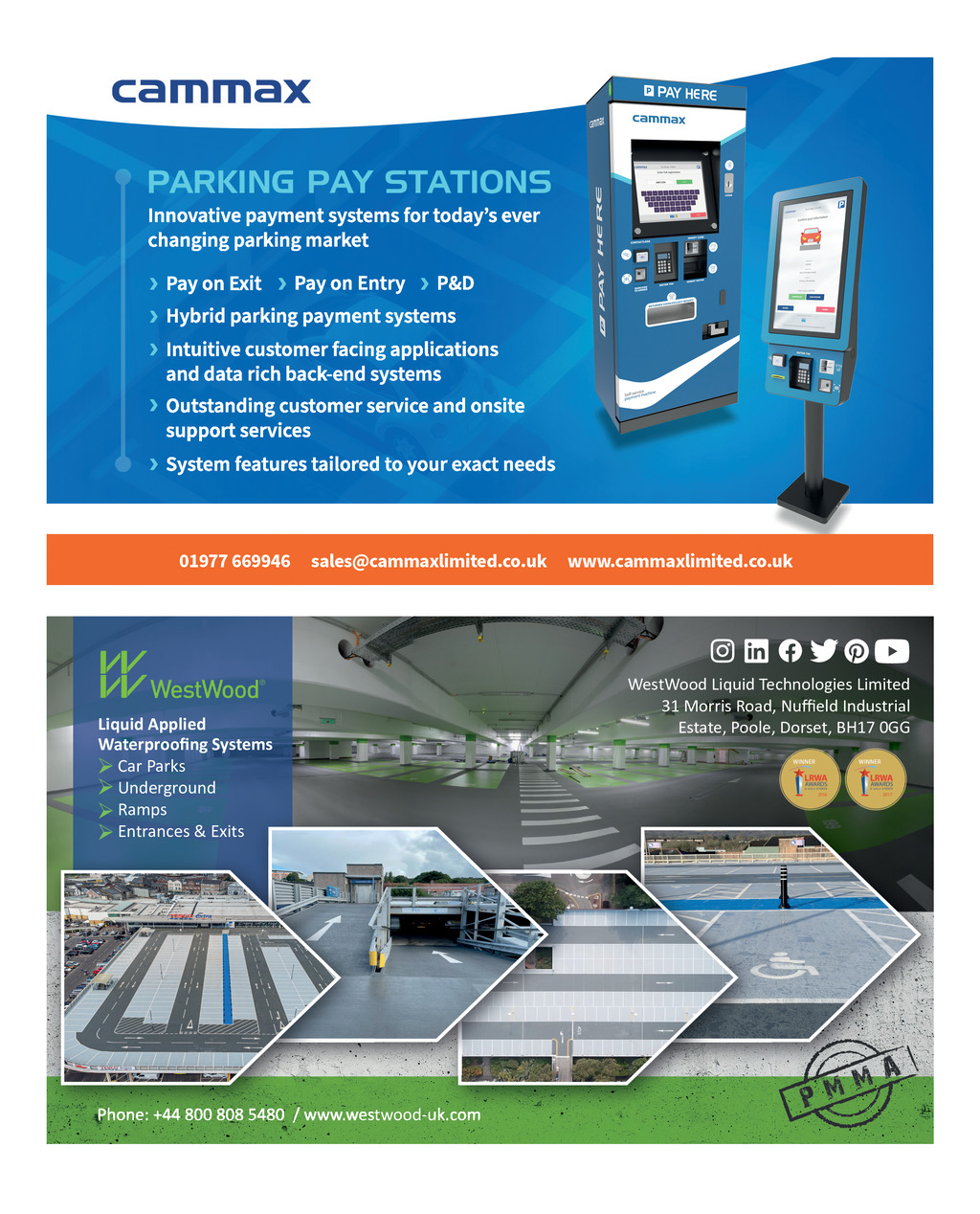 Innovative payment systems for todays ever changing parking market Pay on Exit Pay on Entry P&D Hybrid parking payment systems Intuitive customer facing applications and data rich back-end systems Outstanding customer service and onsite support services System features tailored to your exact needs Liquid Applied Waterproong Systems Car Parks Underground Ramps Entrances & Exits WestWood Liquid Technologies Limited 31 Morris Road, Nueld Industrial Estate, Poole, Dorset, BH17 0GG Phone: +44 800 808 5480 / www.westwood-uk.com PN Oct 2022 pp26-31 MTE.indd 28 23/09/2022 11:40