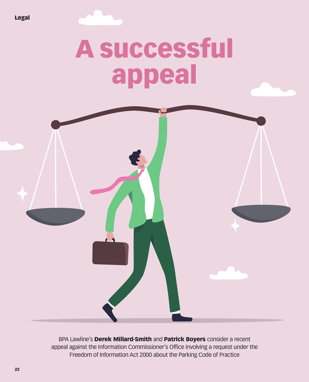 Legal A successful appeal BPA Lawlines Derek Millard-Smith and Patrick Boyers consider a recent appeal against the Information Commissioners Office involving a request under the Freedom of Information Act 2000 about the Parking Code of Practice 22 PN Sept 2023 pp22-23 Legal.indd 22 24/08/2023 11:03