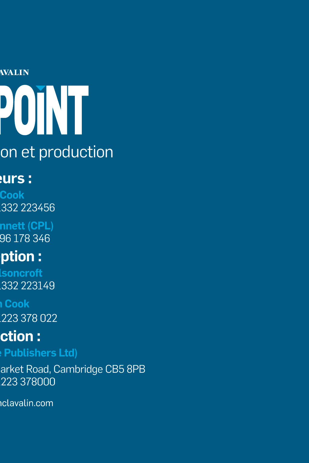 Édition, conception et production Éditeurs: ellie Cook Tel: +44 (0)1332 223456 Andrew Bennett (CPL) Tel: +44 7796 178 346 Conception: Craig Wilsoncroft Tel: +44 (0)1332 223149 Martin Cook Tel: +44 (0) 1223 378 022 Production: CPL (Cambridge Publishers Ltd) 1 Cambridge Technopark, Newmarket Road, Cambridge CB5 8PB Tel: +44 (0)1223 378000