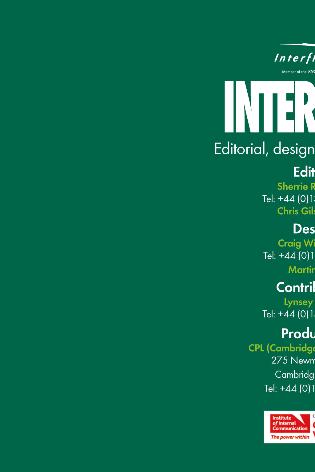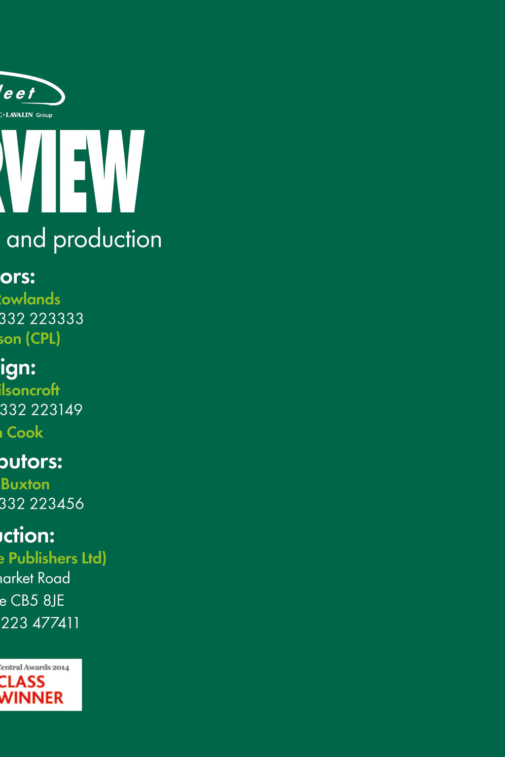 editorial, design and production Editors: sherrie Rowlands tel: +44 (0)1332 223333 Chris Gilson (CpL) design: Craig Wilsoncroft tel: +44 (0)1332 223149 Martin Cook Contributors: Lynsey buxton tel: +44 (0)1332 223456 production: CpL (Cambridge publishers Ltd) 275 Newmarket Road Cambridge CB5 8Je tel: +44 (0)1223 477411
