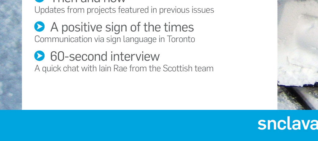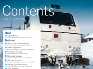 Contents Issue 4 December 2017 News A global view News stories from around our worldwide business Features Graduate scheme gears up Nurturing the railway industrys stars of the future Atkins acquisition Creating the worlds best rail engineering organisation Come rain or shine An overview of the global weather forecast Rail for all seasons Consultants braving snow and searing desert heat The view from here Read about an electrifying career across the continents Managing vital rail assets A Global Product Network for asset management Then and now Updates from projects featured in previous issues A positive sign of the times Communication via sign language in Toronto 60-second interview A quick chat with Iain Rae from the Scottish team snclavalin.com