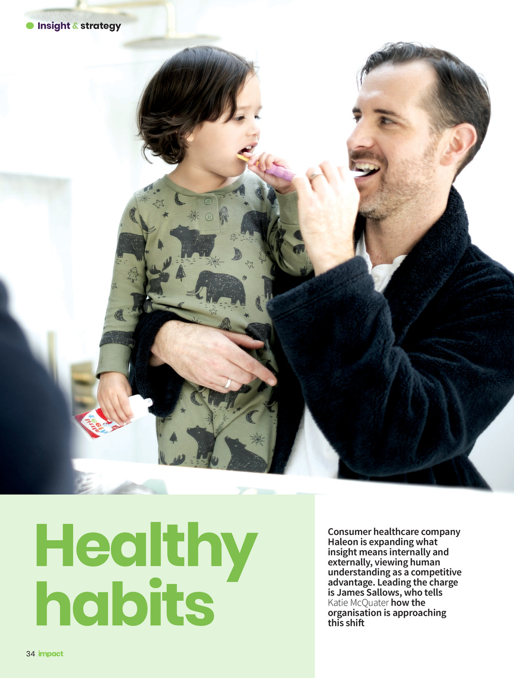 Insight & strategy Healthy habits Consumer healthcare company Haleon is expanding what insight means internally and externally, viewing human understanding as a competitive advantage. Leading the charge is James Sallows, who tells Katie McQuater how the organisation is approaching this shift 34 Impact ISSUE 43 2023_pp34-37 Haleon.indd 34 18/09/2023 12:13