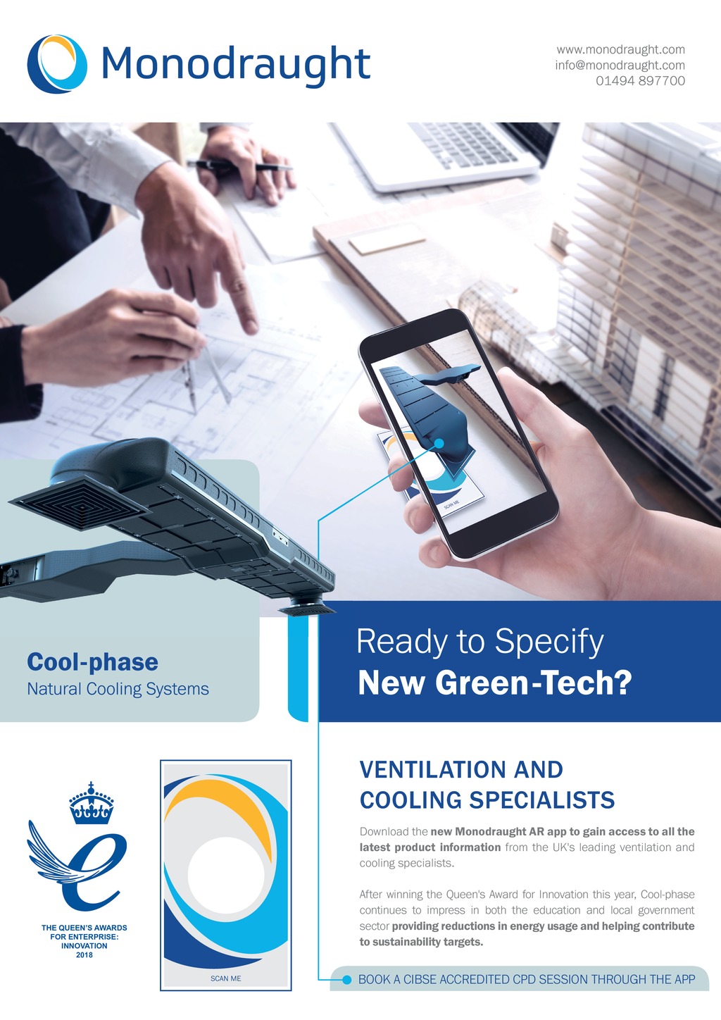 VENTILATION AND COOLING SPECIALISTS Download the new Monodraught AR app to gain access to all the latest product information from the UK s leading ventilation and cooling specialists. THE QUEENS AWARDS FOR ENTERPRISE: INNOVATION 2018 46 December 2018 www.cibsejournal.com p46_CIBSEMagDec18.indd 46 After winning the Queen s Award for Innovation this year, Cool-phase continues to impress in both the education and local government sector providing reductions in energy usage and helping contribute to sustainability targets. BOOK A CIBSE ACCREDITED CPD SESSION THROUGH THE APP 19/11/2018 15:43