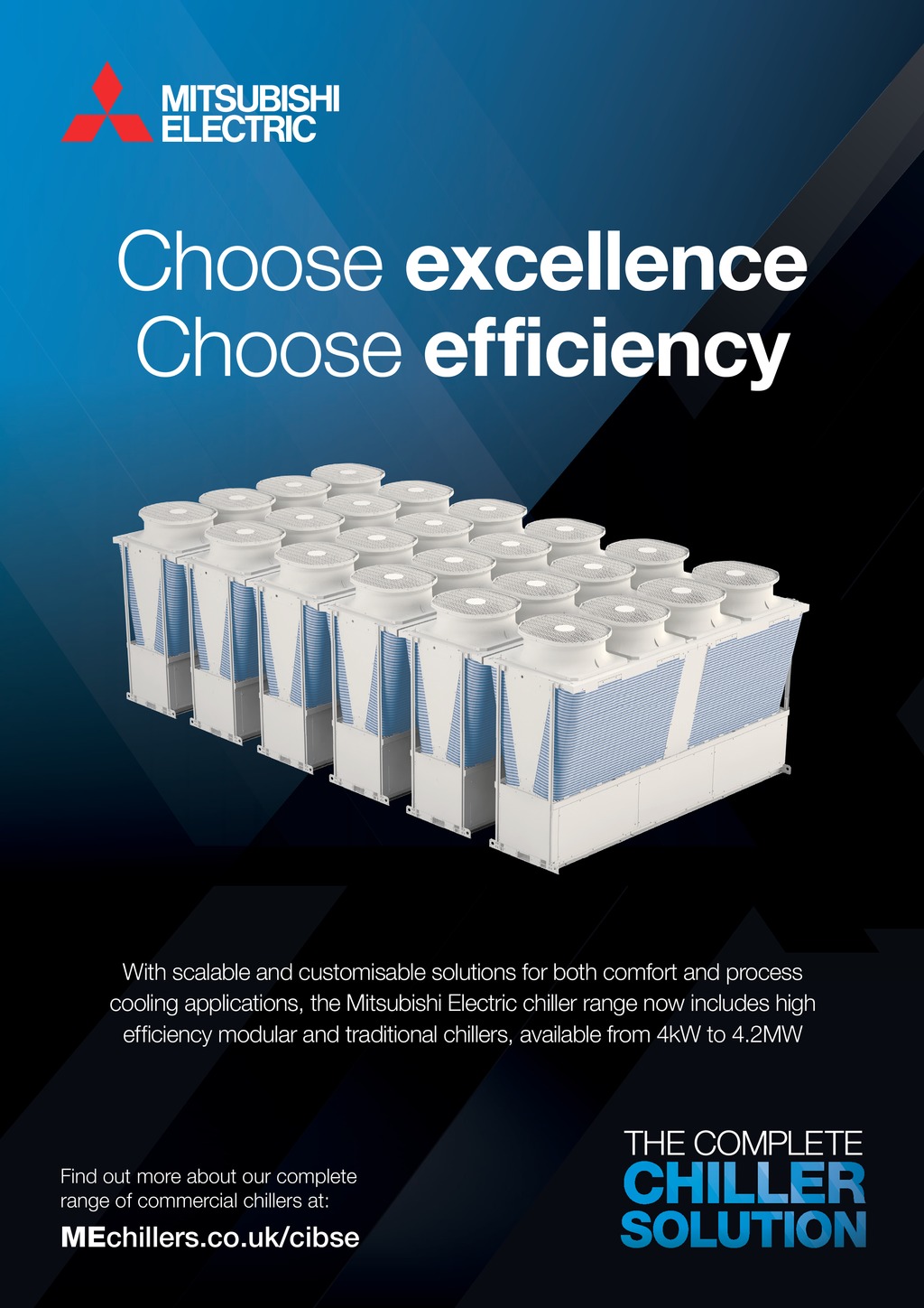 Choose excellence Choose efficiency With scalable and customisable solutions for both comfort and process cooling applications, the Mitsubishi Electric chiller range now includes high efficiency modular and traditional chillers, available from 4kW to 4.2MW Find out more about our complete range of commercial chillers at: MEchillers.co.uk/cibse 42 February 2019 www.cibsejournal.com p42_CIBSEMagFeb19.indd 42 21/01/2019 11:01