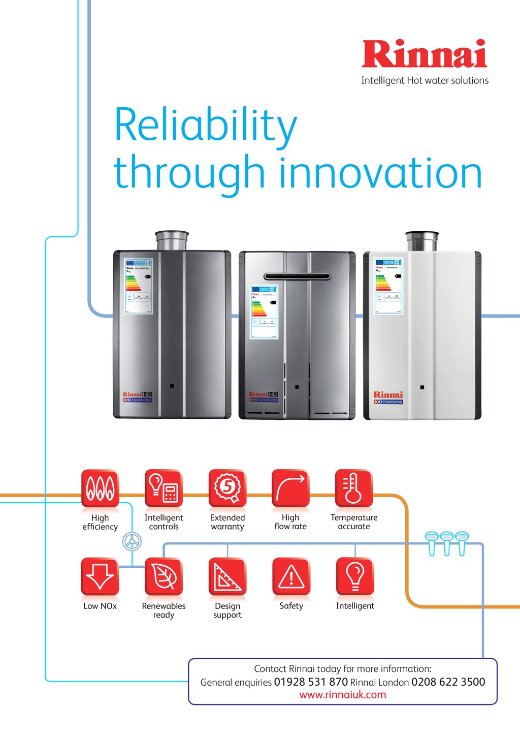 Intelligent Hot water solutions Reliability through innovation High efciency Intelligent controls Extended warranty High ow rate Temperature accurate Low NOx Renewables ready Design support Safety Intelligent Contact Rinnai today for more information: General enquiries 01928 531 870 Rinnai London 0208 622 3500 www.rinnaiuk.com 32 May 2019 www.cibsejournal.com p32_CIBSEHeatMay19.indd 32 23/04/2019 12:03