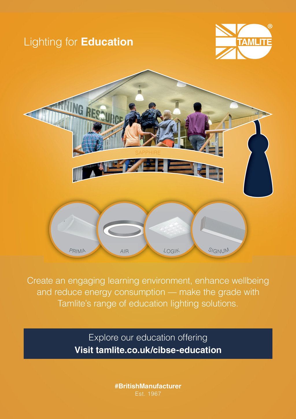Lighting for Education S A P P HI R E PRIMA LO G I K AIR SIGNUM Create an engaging learning environment, enhance wellbeing and reduce energy consumption make the grade with Tamlites range of education lighting solutions. Explore our education offering Visit tamlite.co.uk/cibse-education #BritishManufacturer Est. 1967 32 April 2021 www.cibsejournal.com p32.CIBSEMagApr21.indd 32 23/03/2021 11:56
