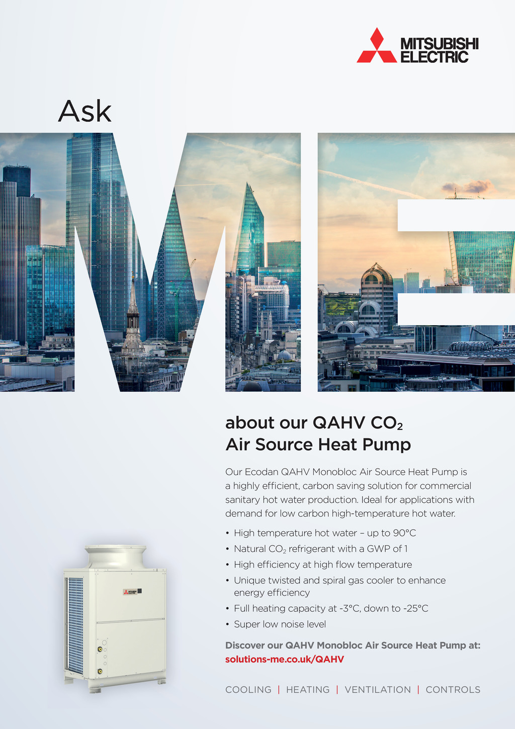 about our QAHV CO2 Air Source Heat Pump Ou Ecodan QAHV Monobloc Air Source Heat Pump is Our a high hly efficient, carbon saving solution for commercial sanitary hot ot water production. Ideal for applications wi with th demand for low carrbo bon n high-temperature hot water. High temperature hot water up to 90C Natural CO2 refrigerant with a GWP of 1 High efficiency at high ow temperature Unique twisted and spiral gas cooler to enhance energy efficiency Full heating capacity at -3C, down to -25C Super low noise level Discover our QAHV Monobloc Air Source Heat Pump at: solutions-me.co.uk/QAHV COOLING | HEATING | VENTILATION | CONTROLS 56 May 2021 www.cibsejournal.com p56.CIBSEMagMay21.indd 56 20/04/2021 15:57