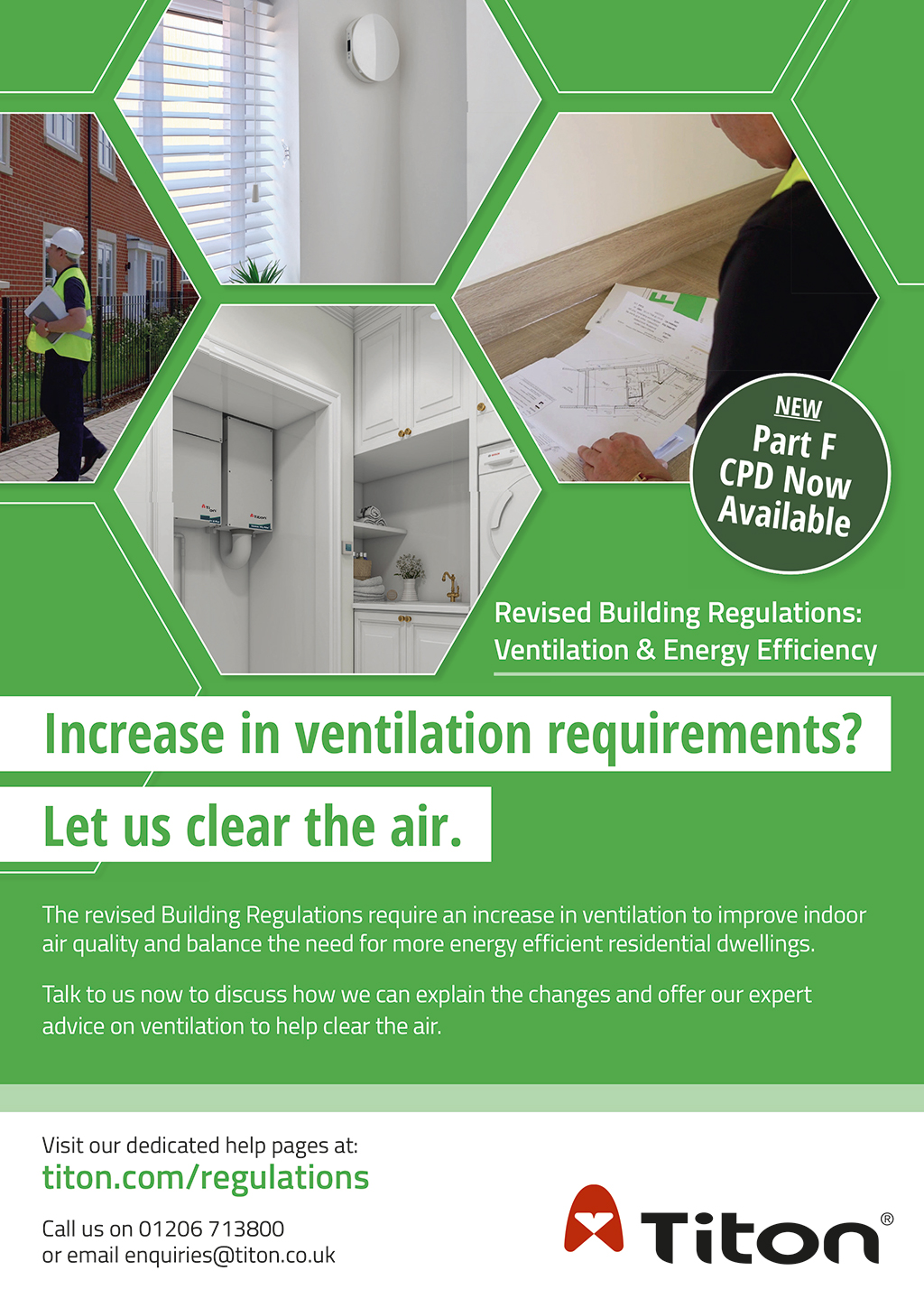NEW Part F CPD Now Available Revised Building Regulations: Ventilation & Energy Efficiency Increase in ventilation requirements? Let us clear the air. The revised Building Regulations require an increase in ventilation to improve indoor air quality and balance the need for more energy efficient residential dwellings. Talk to us now to discuss how we can explain the changes and offer our expert advice on ventilation to help clear the air. Visit our dedicated help pages at: titon.com/regulations Call us on 01206 713800 or60email enquiries@titon.co.uk April 2022 www.cibsejournal.com p60.CIBSEMagApr22.indd 60 21/03/2022 15:30