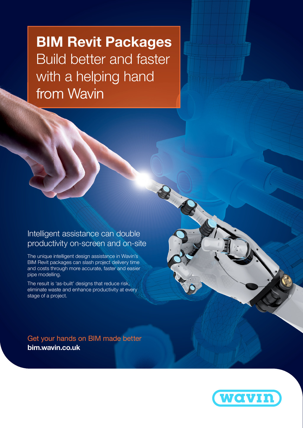 IM Revit Packages Build better and faster with a helping hand from Wavin Intelligent assistance can double productivity on-screen and on-site The unique intelligent design assistance in Wavins BIM Revit packages can slash project delivery time and costs through more accurate, faster and easier pipe modelling. The result is as-built designs that reduce risk, eliminate waste and enhance productivity at every stage of a project. Get your hands on BIM made better bim.wavin.co.uk 2 May 2022 www.cibsejournal.com p02.CIBSEMagMay22.indd 2 19/04/2022 10:25