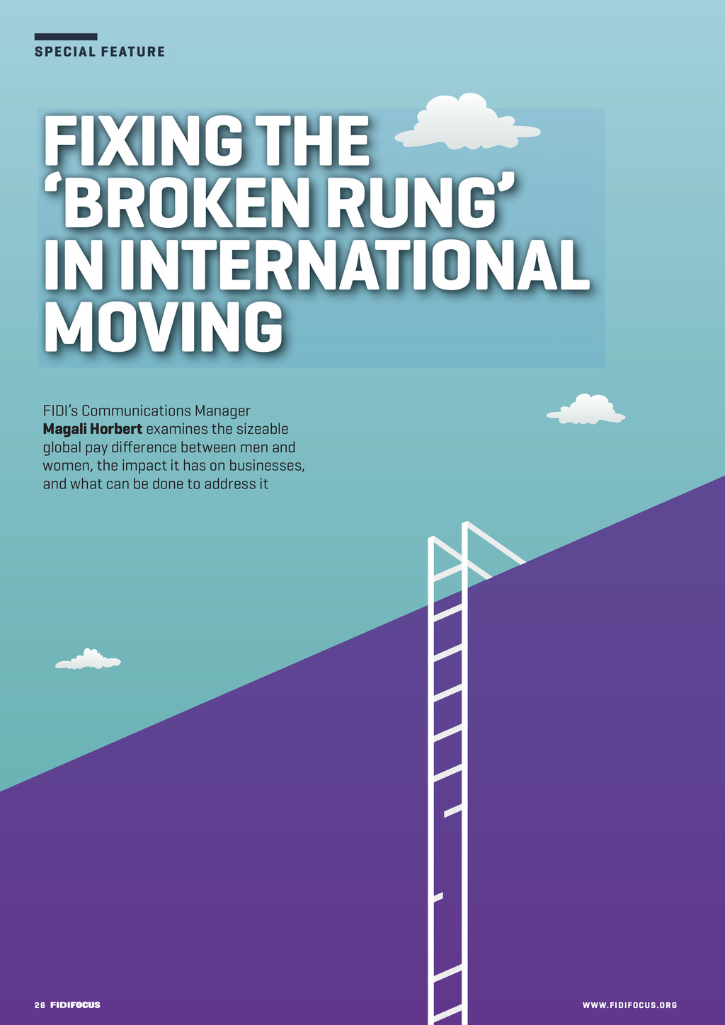 S P E C I A L F E ATURE FIXING THE BROKEN RUNG IN INTERNATIONAL MOVING FIDIs Communications Manager Magali Horbert examines the sizeable global pay difference between men and women, the impact it has on businesses, and what can be done to address it 26 FF307 September-November 22 pp26-31 Gender parity.indd 26 WW W. F I D I FOC U S . OR G 06/09/2022 12:40