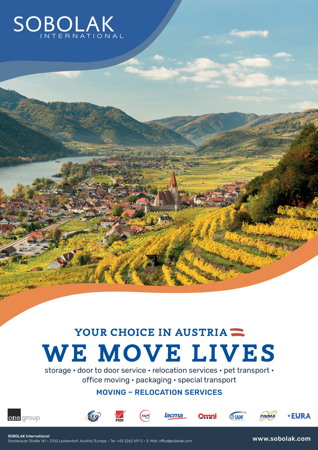 YOUR CHOICE IN AUSTRIA WE MOVE LIVES storage door to door service relocation services pet transport office moving packaging special transport MOVING RELOCATION SERVICES SOBOLAK International Stockerauer Strae 161 2100 Leobendorf, Austria / Europe Tel: +43 2262 691 0 E-Mail: office@sobolak.com FF307 September-November 22 pp64-67_FIDIAssociations.indd 64 www.sobolak.com 06/09/2022 07:50