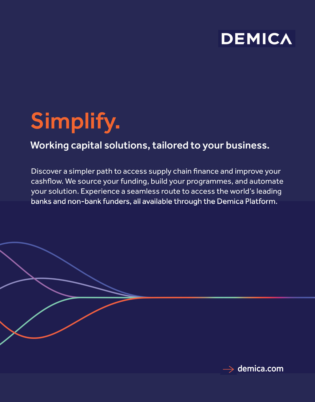 Simplify. Working capital solutions, tailored to your business. Discover a simpler path to access supply chain finance and improve your cashflow. We source your funding, build your programmes, and automate your solution. Experience a seamless route to access the worlds leading banks and non-bank funders, all available through the Demica Platform. demica.com TT ISSUE 1 23 pp2-3 Eds letter.indd 2 23/02/2023 08:53