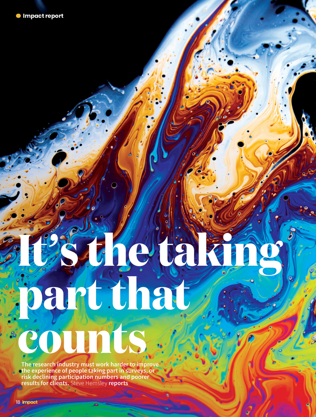 Impact report Its the taking part that counts The research industry must work harder to improve the experience of people taking part in surveys, or risk declining participation numbers and poorer results for clients. Steve Hemsley reports 18 Impact ISSUE 36 2022_pp18-27_Report.indd 18 08/12/2021 09:54