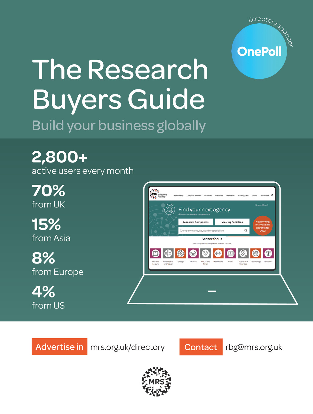 D i re c t o r y s po nso r The Research Buyers Guide Build your business globally 2,800+ active users every month 70% from UK 15% from Asia 8% from Europe 4% from US Advertise in mrs.org.uk/directory +44 (0)20 7566 1853 Impact ISSUE 44 2023_pp6-7_Rory.indd 6 Contact rbg@mrs.org.uk 05/12/2023 11:50